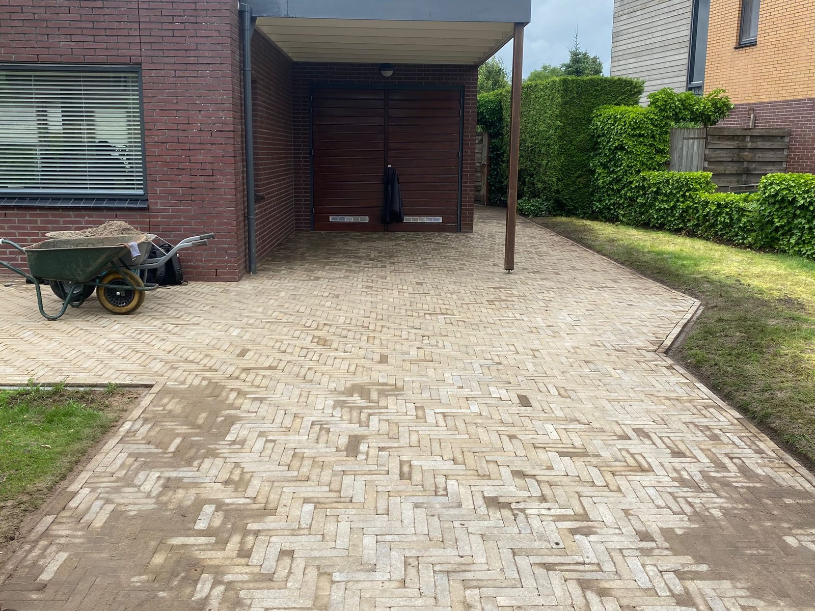 Duurzaamheid stond hoog in het vaandel, en daarom hebben we de bestaande bestrating een tweede leven gegeven. Door de steentjes om te draaien, hebben we niet alleen een duurzame keuze gemaakt, maar ook een frisse en eigentijdse uitstraling gecreëerd.